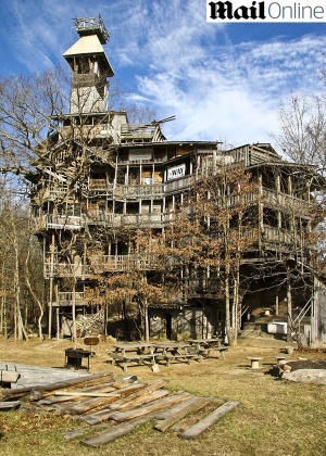 Pois Burgess não se contentou em fazer uma simples casinha de bonecas. A casa de madeira do sujeito tem 10 andares e é gigantesca.