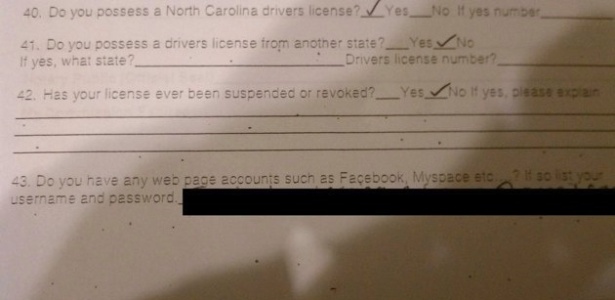 Era o que acontecia com quem se candidatava a um emprego de guarda para o Departamento de Correções do Estado americano de Maryland. Como a União Americana pelas Liberdades Civis (ACLU, em inglês) reclamou que isso configura invasão de privacidade e limita a liberdade de expressão, a prática foi deixada de lado e substituída por outra.