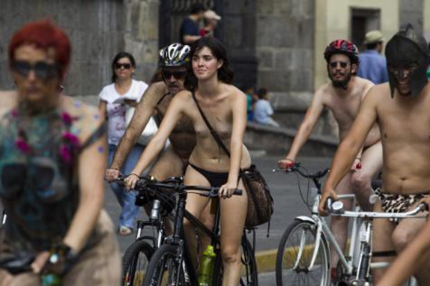 Protestando como vieram ao mundo e com os corpos pintados, os ciclistas – entre eles várias crianças- iniciaram seu percurso no monumento à Revolução da capital mexicana. Eles protestavam contra a atual dependência dos transportes com combustíveis fósseis.