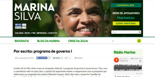 Sem citar o nome de Dilma, Marina criticou o fato de a petista não ter apresentado um programa durante a campanha, mas disse que, mesmo sem ter colocado as propostas no papel, ela pode ser cobrada pela sociedade pelos seus atos. “A Lei de Diretrizes Orçamentárias e a de Responsabilidade Fiscal foram escritas pelos congressistas. O Brasil espera que eles (o governo e a base aliada) não esqueçam disso”, afirmou.
