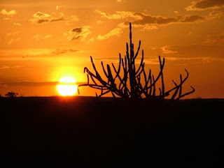De onde estou, no monótono entardecer sertanejo, só ouço barulho de pássaros recolhendo-se aos seus dormitórios, formados pelas frondosas árvores de galhos ainda verdes não roubados pela seca.
