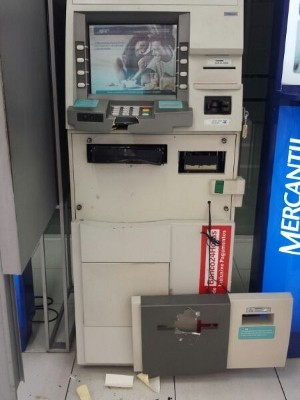 O segundo caso ocorreu algumas horas depois, no Centro. Segundo informações de testemunhas, homens entraram no banco e, com uma ferramenta, abriram uma parte do caixa automático, onde bananas de dinamite foram colocadas.