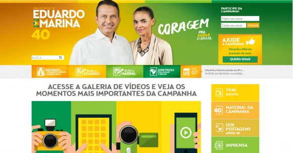 poSe inspirando no modelo de arrecadação de campanha disseminado pelo presidente dos Estados Unidos, Barack Obama, nas eleições de 2008, a Coligação Unidos pelo Brasil, de Eduardo Campos e Marina Silva, adotará o mesmo modelo nas eleições deste ano. Os postulantes lançaram nesta, quinta-feira (7), o sistema de arrecadação de recursos on-line, pelo site www.eduardoemarina40.com.br.