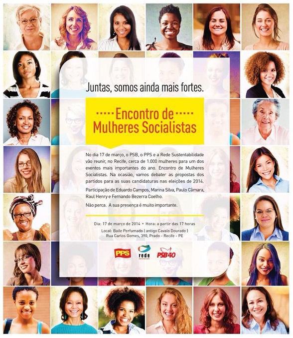 A Secretaria Estadual de Mulheres do PSB Pernambuco realiza, nesta segunda-feira (17), a partir das 17h, no Baile Perfumado, no Prado, o Encontro das Mulheres Socialistas. O evento tem como principal objetivo discutir as políticas públicas do gênero.