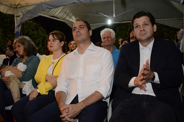 Ontem, Paulo Câmara participou da missa do padroeiro de São Lourenço com a comitiva da Frente Popular. Entre os presentes, o candidato a presidente da República Eduardo Campos (PSB) ganhou atenção especial. Além de receber presente do padre Hector Ruiz, pároco do município, o socialista foi chamado ao centro do palco na condição de “ex-governador e candidato a presidente” para receber parabéns com direito a bolo e música na praça Dr. Araújo Sobrinho, em frente à Igreja Matriz. Em discurso, um jovem desejou proteção e sorte na sua trajetória.