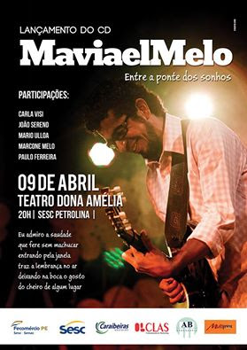 O compositor, cordelista e poeta Maviael Melo lança no próximo dia 9 de abril, às 20h, no Teatro Dona Amélia (Sesc), em Petrolina seu primeiro registro fonográfico, Entre a Ponte dos Sonhos. O show de lançamento do CD, que tem a direção musical de Kiko Souza, vai contar com as participações especiais de Carla Visi, João Sereno, Mario Ulloa, Marcone Melo e Paulo Ferreira.