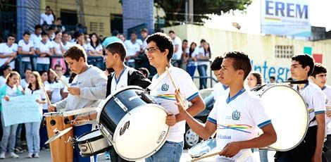 Logo na entrada da cidade de São Vicente Férrer, no Agreste do Estado, um motobói se ofereceu ontem para levar a reportagem à Escola de Referência em Ensino Médio (Erem) Coronel João Francisco. Estava orgulhoso do bom desempenho do colégio no Exame Nacional do Ensino Médio (Enem) 2014, cujas notas foram divulgadas quarta-feira pelo Ministério da Educação. Nos corredores, nas salas de aulas e nas rodas de conversa da escola, esse também era o assunto (e o sentimento) entre alunos, professores e funcionários. Não foi diferente com os estudantes e docentes da Erem João Pessoa Souto Maior, em Sairé (também no Agreste), que foram para as ruas com cartazes, banda improvisada, carro de som e muitos sorrisos para comemorar a inclusão do colégio no grupo das 10 melhores unidades públicas do Brasil que atendem jovens de baixa renda.