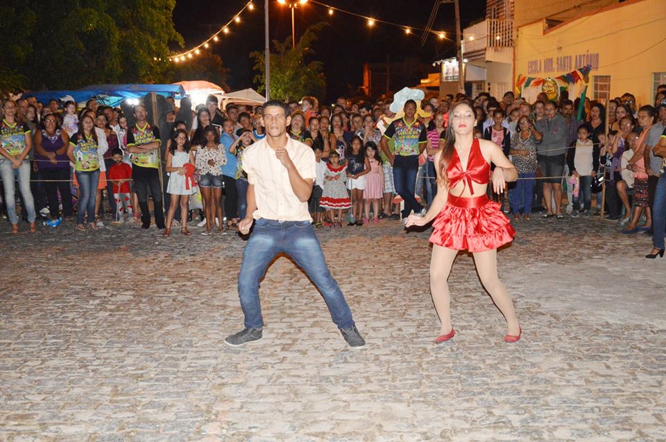 O arraiá do santo casamenteiro teve início às 19h com a celebração eucarística, presidida pelo padre Daniel. Em seguida, se apresentaram os grupos de dança Xô Preguiça, Menina Moça e Mulher Rendeira, todos da Escola Santo Antônio, além do Pout Pourri da Escola Antônio Piancó Sobrinho. Edlin Tamires e Widlei Cleyton encerraram as apresentações com a lambada estilizada.