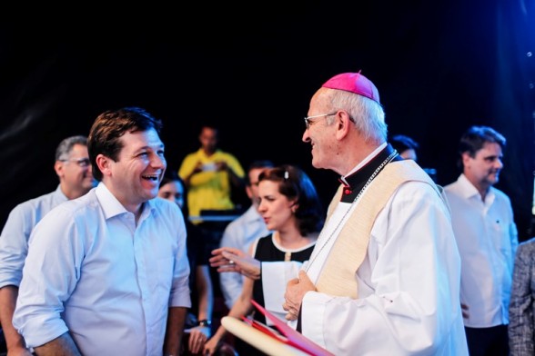 O prefeito Geraldo Julio (PSB) participou, nesta quinta-feira (16), da missa campal em homenagem à padroeira do Recife, Nossa Senhora do Carmo. A celebração foi presidida pelo arcebispo metropolitano do Recife, Dom Fernando Saburido. A solenidade ocorreu no Pátio do Carmo, em frente à Basílica que homenageia a santa, no bairro de Santo Antônio. O socialista estava acompanhado da primeira-dama, Cristina Melo, e do vice-governador Raul Henry (PMDB).