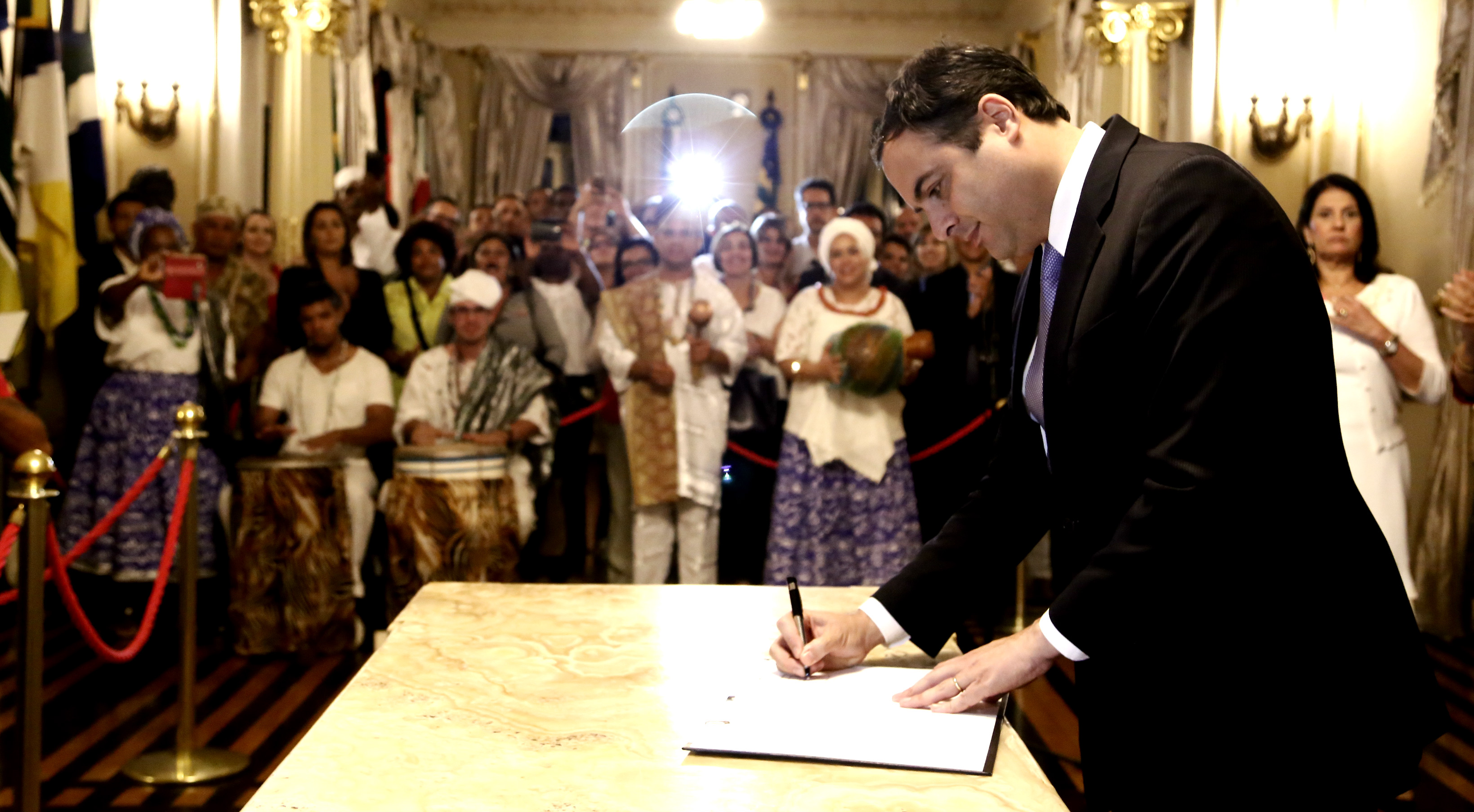 CAMINHADA – Foi sob aplausos que o governador Paulo Câmara assinou o decreto que institui a tradicional Caminhada dos Terreiros de Pernambuco como marco do início das festividades do mês da Consciência Negra, no Estado, a partir de 2016. Considerada a maior mobilização da tradição africana, levando milhares de religiosos, simpatizantes e militantes do tema às ruas e avenidas do Centro do Recife, o evento passa a ser realizado no primeiro dia útil após o Dia de Finados (2 de novembro).