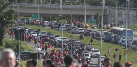O governo de Pernambuco e a diretoria do Sport aprovaram o plano de mobilidade montado para a partida de domingo (19), na Arena Pernambuco, apesar de os torcedores que optaram por ir ao estádio em veículos particulares terem enfrentado uma verdadeira via-crúcis. Foram quilômetros de congestionamento antes e depois da partida contra o São Paulo. Em vez disso, políticos e dirigentes preferiram exaltar o bom desempenho do transporte público (ônibus e metrô).