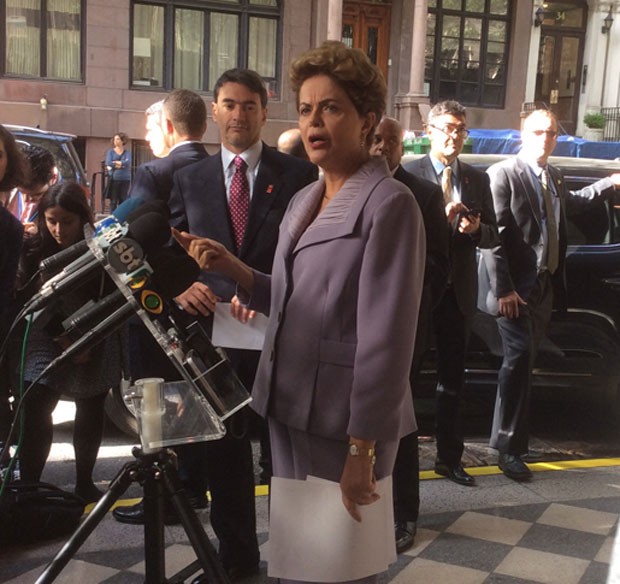 1A presidente Dilma Rousseff comentou neste sábado (26) a disparada da cotação do dólar e disse que o governo está “extremamente preocupado” com o fato de haver empresas com dívidas na moeda americana. Ela enfatizou, no entanto, que o o Brasil tem “reservas suficientes”. Dilma conversou com jornalistas em Nova York, após participar de uma reunião com lideres da Índia, Alemanha e Japão.