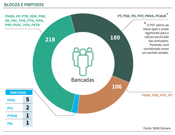 De acordo com cálculos da Secretaria-Geral da Mesa (SGM) da Câmara dos Deputados, a ordem de escolha, pelos blocos partidários, a partir do sistema de proporcionalidade partidária, é a seguinte: