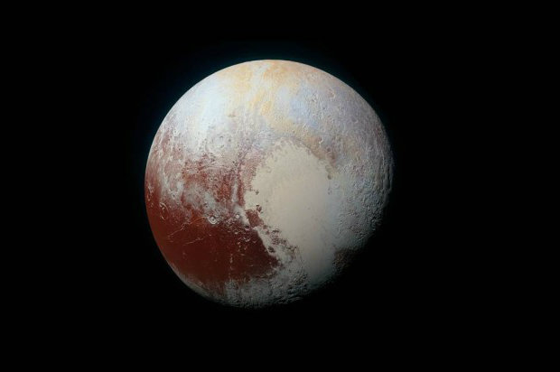 A Nasa divulgou uma nova imagem de Plutão. A foto mostra tons azuis, vermelhas e infravermelhas feitas pela câmera Ralph/Multispectral Visual. A superfície do planeta-anão exibe cores sutis aproximadas de amarelo e laranja em tons pálidos e um vermelho escuro. Segundo a agência espacial americana, cada acidente geográfico possui suas próprias cores distintas e ajuda a entender a história geológica e climatológica do planeta.