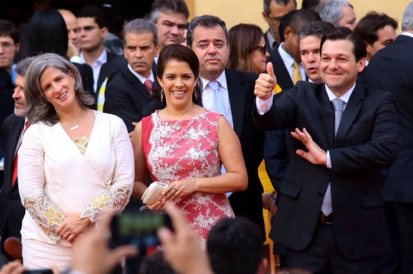 A viúva do ex-governador Eduardo Campos, Renata, está entre os convidados que assistem à transmissão de cargo do já ex-governador João Lyra Neto para o governador Paulo Câmara, ambos do PSB. Ela acompanha o evento ao lado do prefeito do Recife, Geraldo Júlio, e a primeira-dama da capital, Cristina Mello.