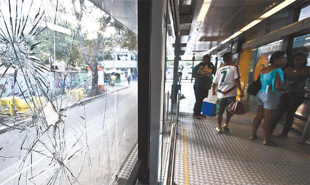 Enquanto isso, na Estação Riachuelo, na rua de mesmo nome, na Boa Vista, os vidros estão rachados nos dois lados da estrutura pertencente ao corredor Norte/Sul. Segundo funcionários, adolescentes em situação de rua jogaram pedras contra os vidros há cerca de seis meses. “Eu não estava aqui, mas falaram que ainda era cedo da noite quando os meninos fizeram essa bagunça”, comentou um jovem que trabalha no local.