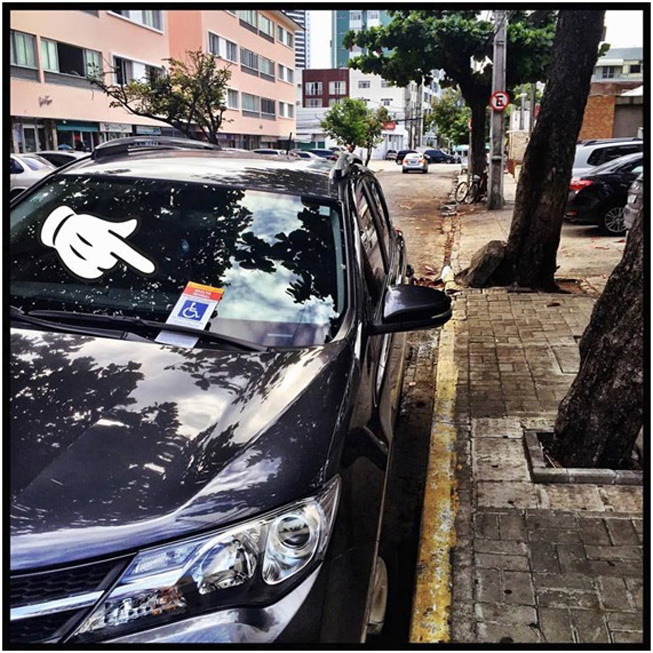 3) Esteja sempre com o bloquinho em mãos e atente para vagas reservadas e outras estruturas acessíveis ao cotidiano urbano que estejam sendo usadas erroneamente.