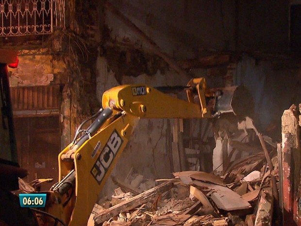 A ação é delicada por causa do risco para dez edificações vizinhas, também comprometidas. Todas elas estão isoladas. Técnicos da Defesa Civil estiveram na Rua da Glória para dar início ao processo de demolição. Eles levaram máquinas pesadas para agilizar o trabalho. A rua segue interditada.