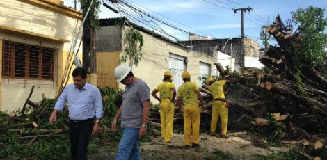 Após as fortes chuvas, que pegaram de surpresa a população da capital pernambucana, na tarde desta sexta-feira (29), equipes da Defesa Civil, Emlurb, Guarda Municipal, agentes e orientadores da CTTU e funcionários Celpe, além do prefeito do Recife Geraldo Julio, trabalham na desobstrução de ruas da cidade. Na manhã deste sábado (30) a comissão, formada na noite de ontem, começou o trabalho de retirada de árvores em vários pontos. Estima-se que cerca de 150 árvores tenham sido derrubadas, mas o balanço geral dos prejuízos só será oficializado por volta das 10h30 quando o prefeito realizará uma coletiva.