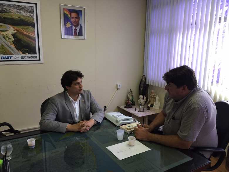 lucas-ramos-e-representante-DER-PEO deputado estadual Lucas Ramos (PSB) e o diretor de obras do Departamento de Estradas de Rodagem de Pernambuco (DER-PE), Silvano Carvalho, reuniram-se ontem para avaliar o andamento dos trabalhos tocados pelo órgão na implantação e recuperação de rodovias estaduais.