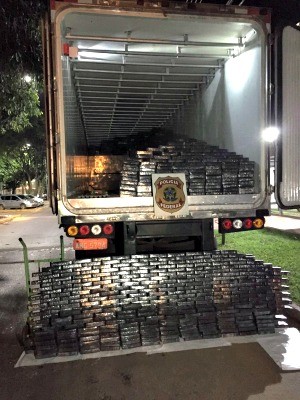 O condutor de um caminhão carregado com 506 quilos de cocaína foi preso pela Polícia Federal (PF) na BR463, na região de fronteira do Brasil com o Paraguai próximo a Ponta Porã, a 326 km de Campo Grande. A droga estava escondida no fundo falso do veículo, que transportava carne.