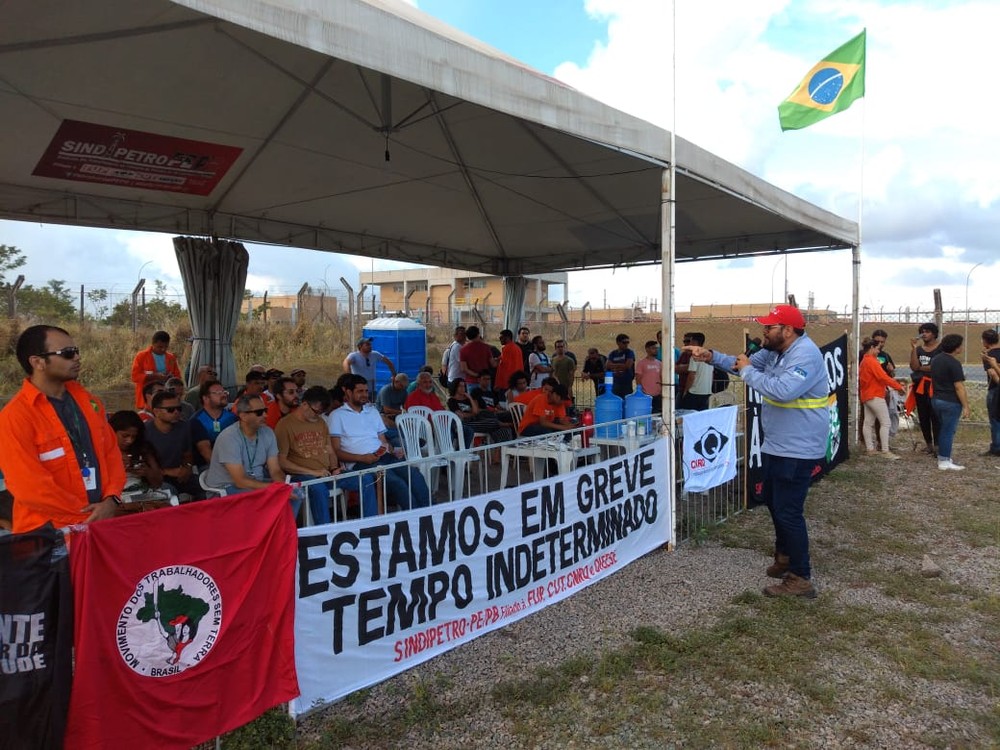Em greve, petroleiros realizam ato no Complexo de Suape
