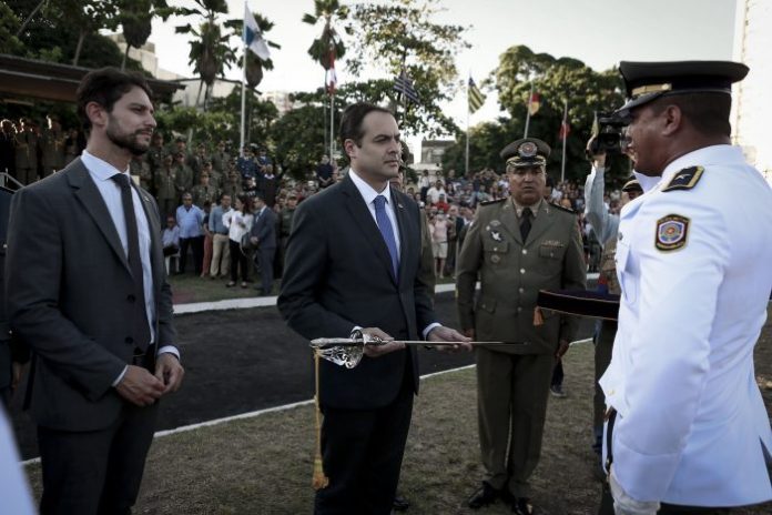 O governador Paulo Câmara comandou, nesta sexta-feira (10.01), a solenidade de Conclusão do Curso de Formação de Oficiais da Polícia Militar e do Corpo de Bombeiros de Pernambuco, realizada no Quartel do Comando Geral da Polícia Militar de Pernambuco, no Derby. Ao todo, 72 aspirantes a oficiais, sendo 55 da PMPE e 17 do CBMPE, participaram da cerimônia de devolução do Espadim Tiradentes, recebido no início do curso, que representa a honra e a dignidade dos cadetes, e foram agraciados com as espadas que representam o oficialato.